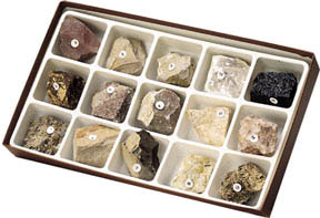 - Contains 15 representative specimens of intrusive and extrusive igneous rocks, each approximately 11/2" x 11/2".