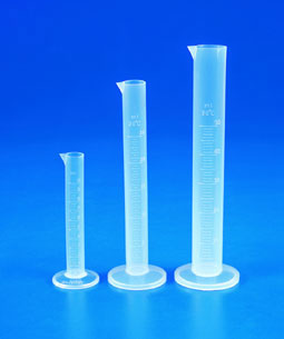 - Single piece, molded of translucent plastic, with raised numerical graduations. Resistant to most common acids, bases and solvents.