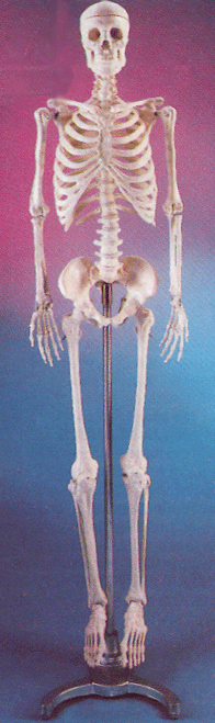 - This is an excellent half-size model for demonstrating the basic anatomical features of the human skeleton. The carpals and tarsals are fused, but the rest of the skeleton has natural movement in the joints. The heavy metal base adds an extra measure of stability while the skeleton itself is constructed of rugged plastic. Features include unbreakable ribs, stainless steel screw, brackets and springs to resist corrosion.